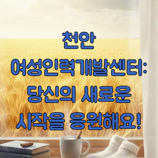 - 운영 시간 및 연락처: 자세한 내용은 천안 여성인력개발센터 홈페이지를 통해 확인하시는 것이 가장 정확해요. (방문 전 전화 문의 추천!)